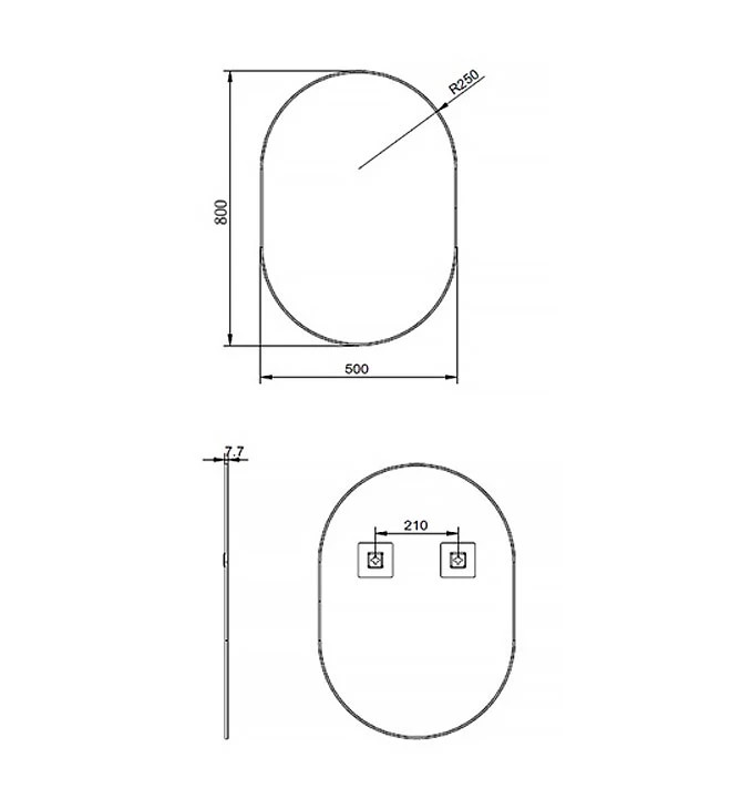 MINOTTI 500x800 mm matt fekete alu tükör 7,7 mm kerettel